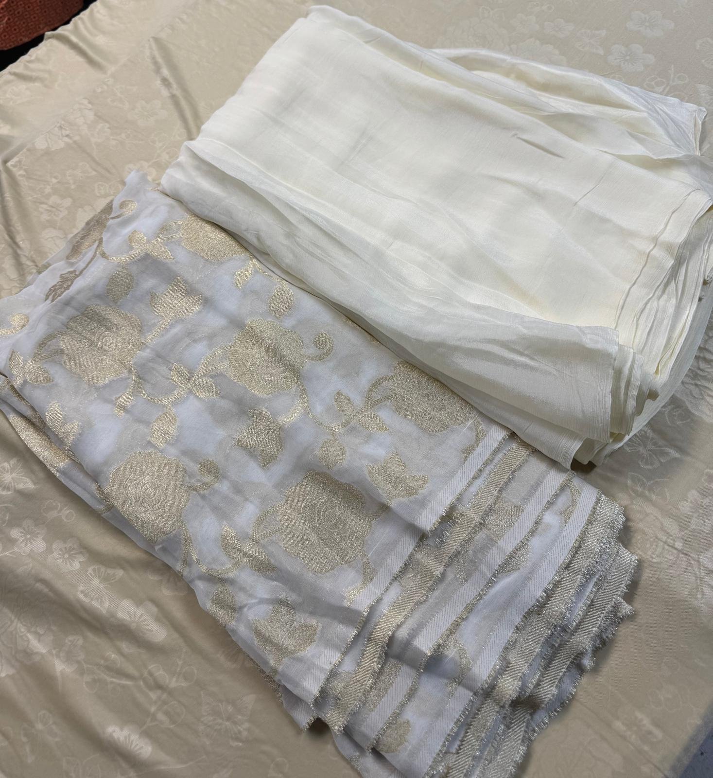 This unstitched suit fabric set comes with beautifully printed material that allows you to customize the outfit exactly the way you want. The fabric features detailed floral prints that give it a rich and elegant look, perfect for everyday wear or light festive occasions. Since it is unstitched, it offers complete freedom in terms of fit, length, and style.