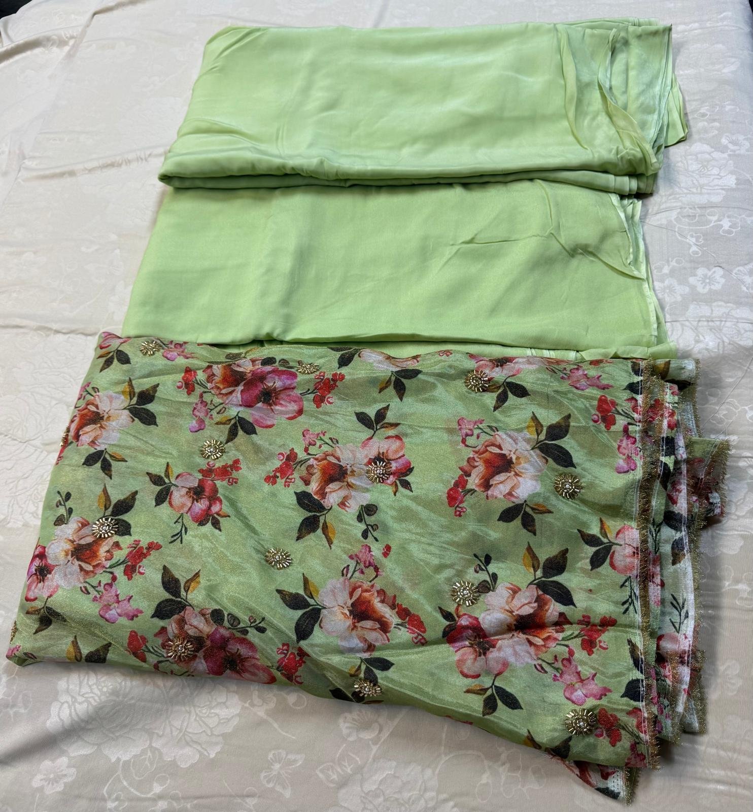 The set includes coordinated fabric pieces for the kurta, bottom, and dupatta, making it easy to design a well-matched outfit. The fabric feels soft and comfortable, suitable for regular wear as well as special gatherings. It can be stitched into a simple suit or styled with modern cuts depending on your preference.